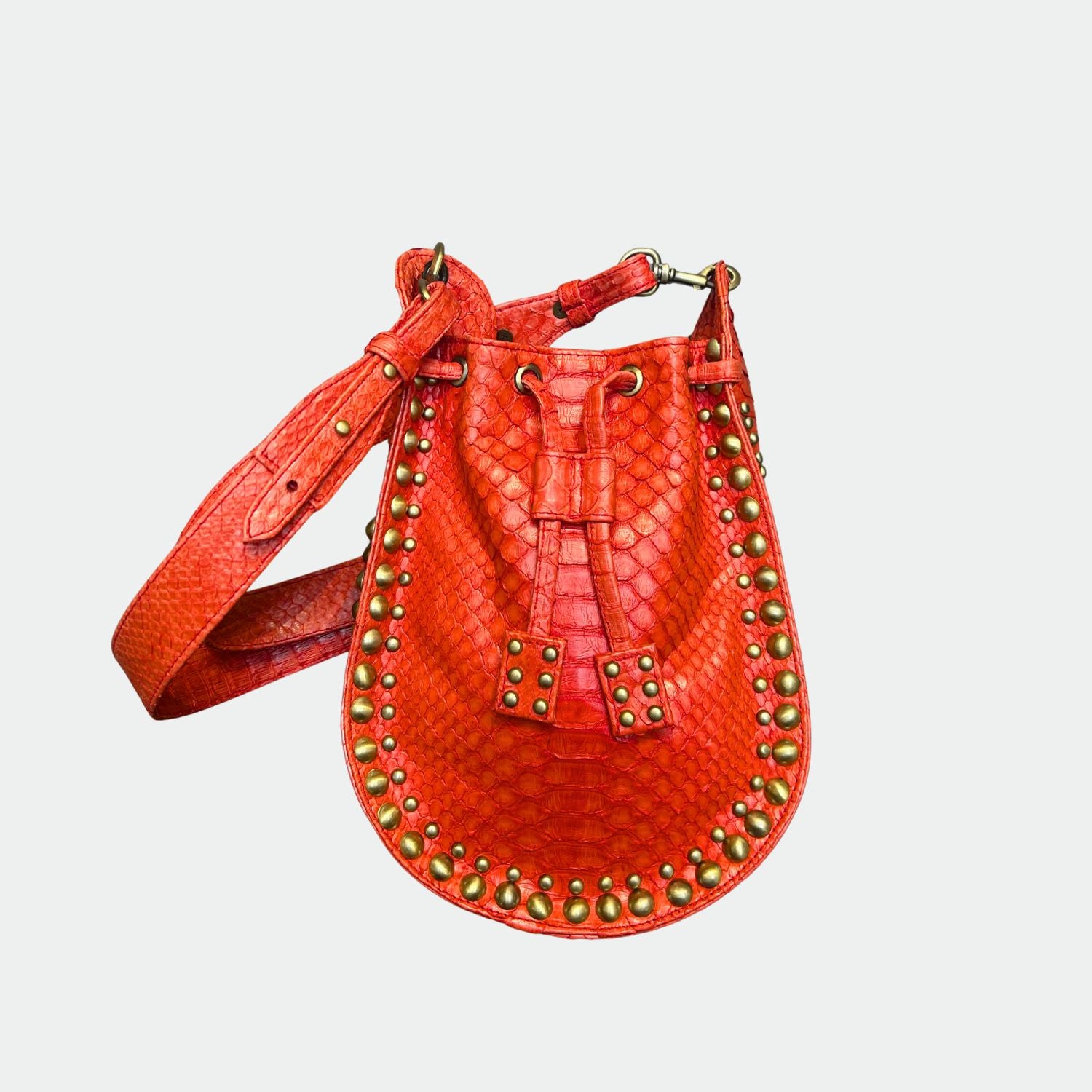 Python bag, with cotton interior lining and magnetic closure.
