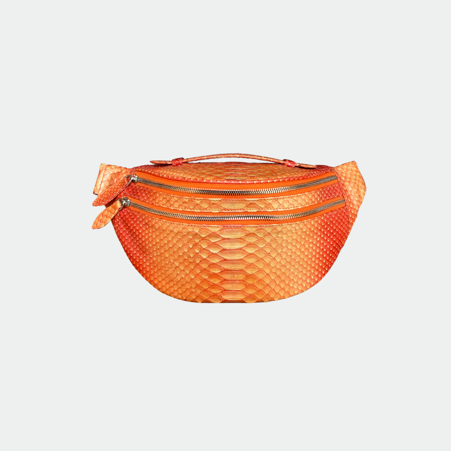 Python belt bag with cotton lining. Single compartment with zip closure and back pocket. Python shoulder strap.