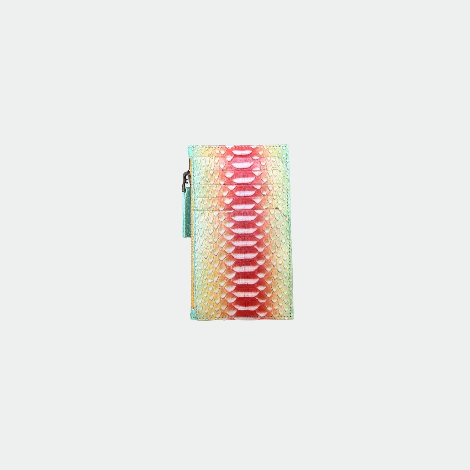 Python card holder. Five card compartments with zipped pocket. Zip closure.