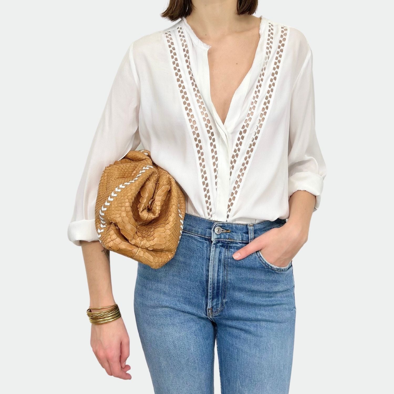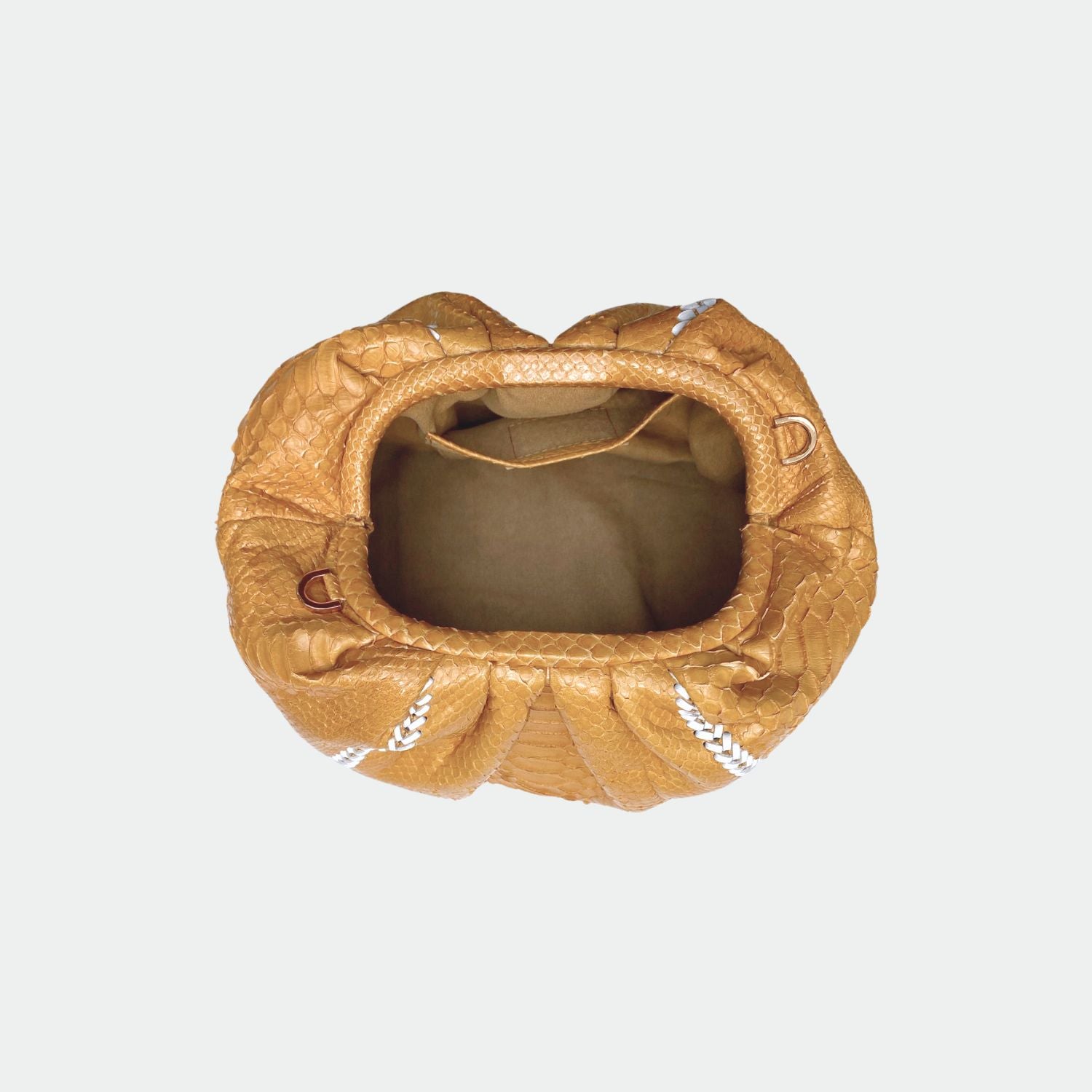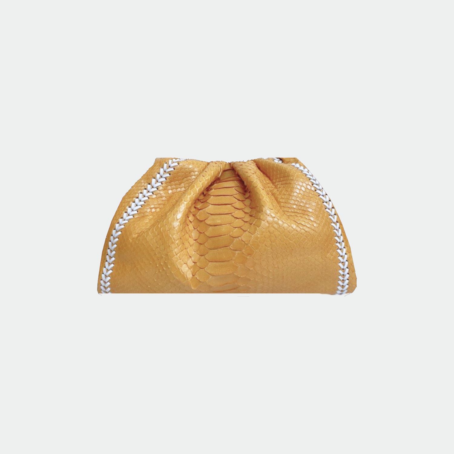 Soft python pouch, with cotton interior lining and magnetic closure.