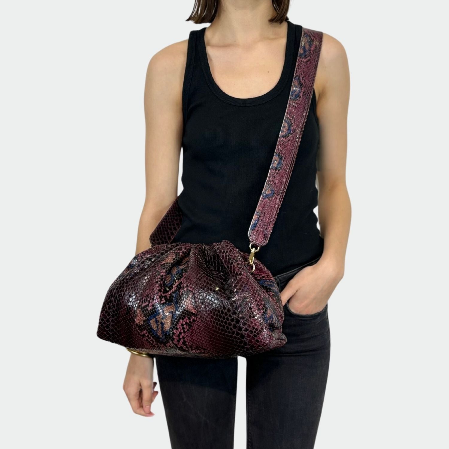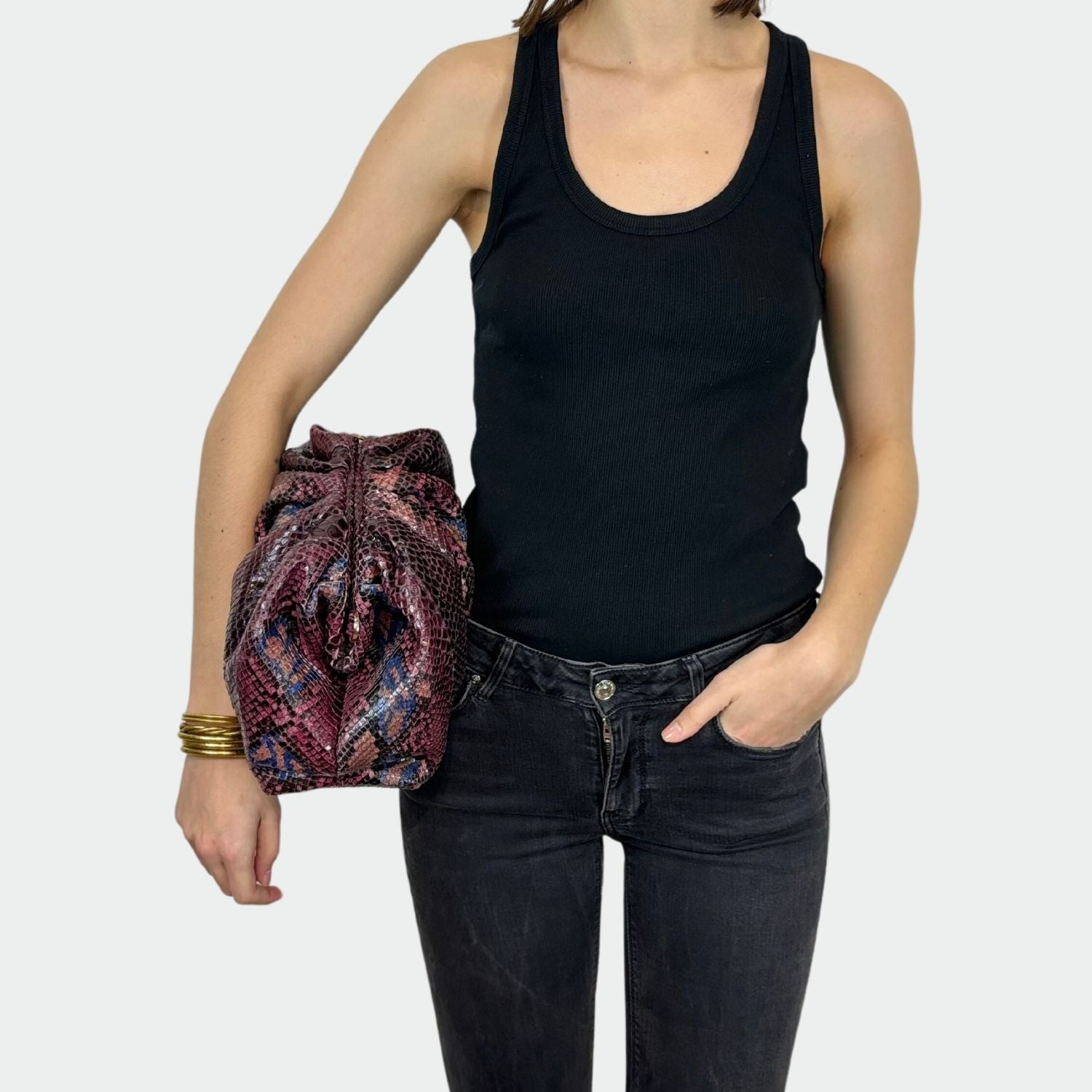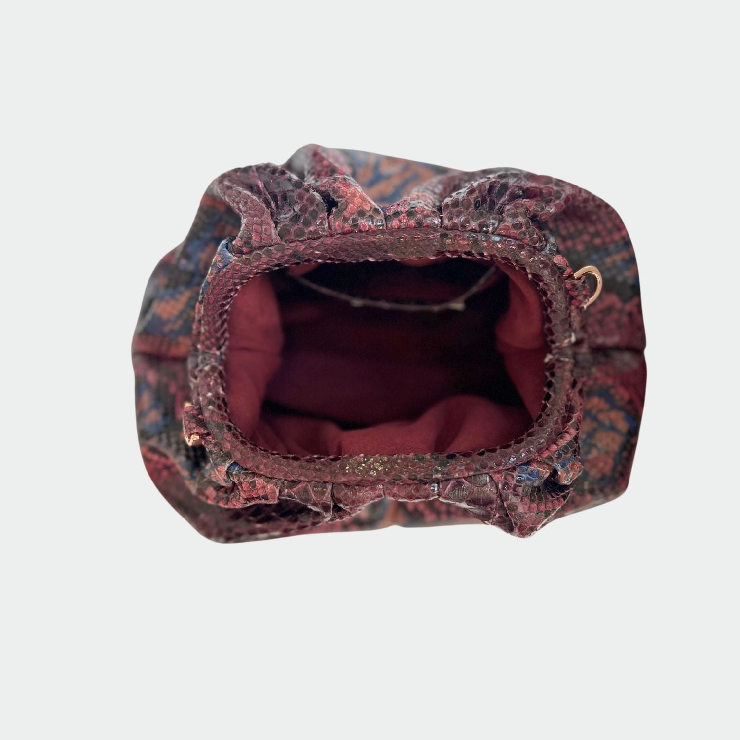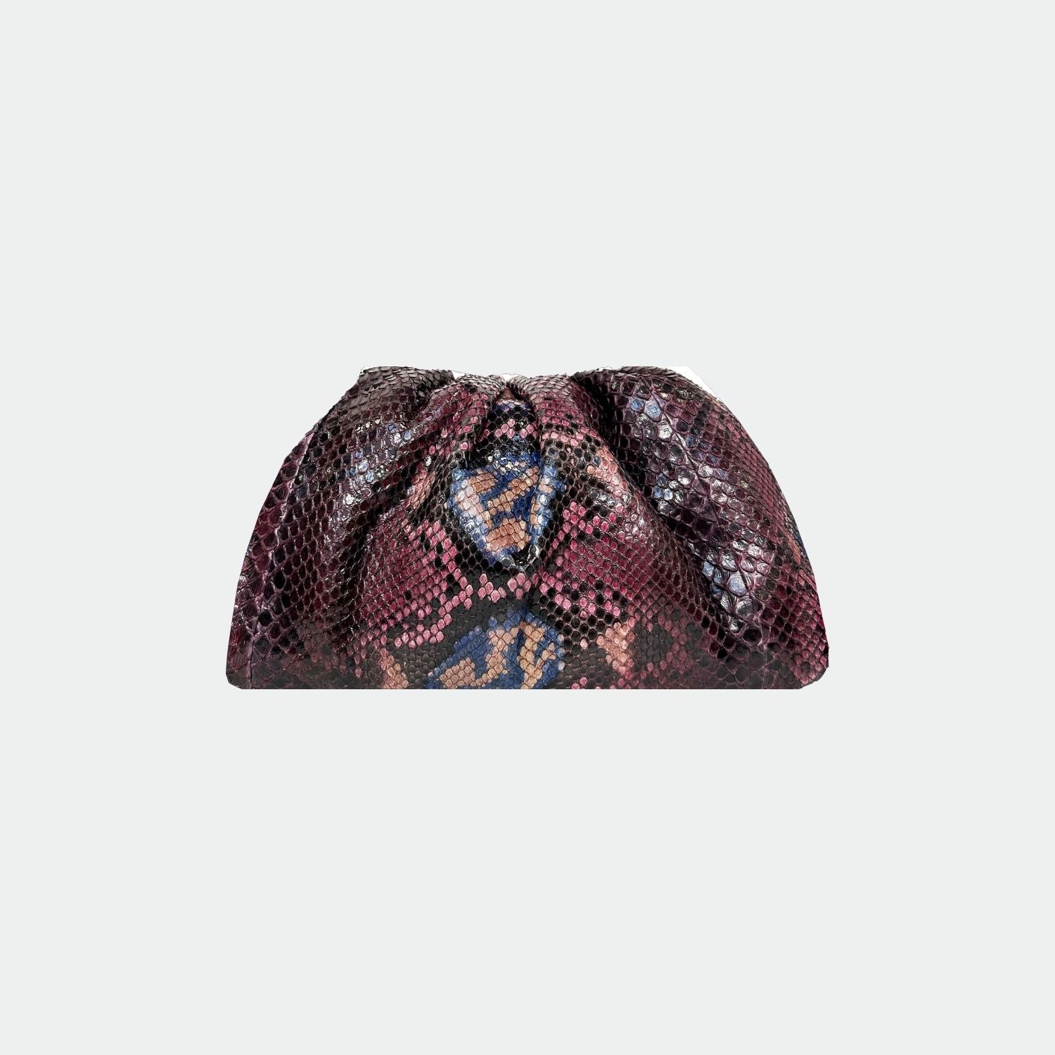 Soft python pouch, with cotton interior lining and magnetic closure.