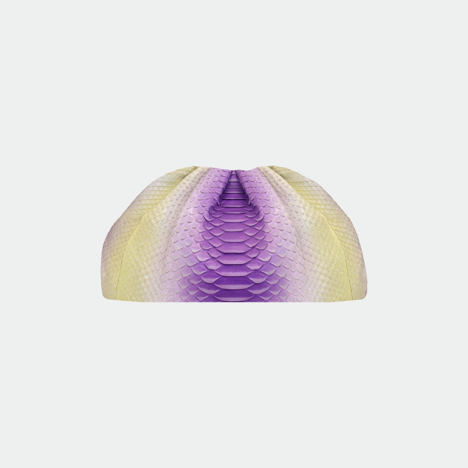 Soft pouch in suede-effect calfskin on the sides and python leather in the middle, with cotton interior lining and magnetic closure. Single compartment with small pocket. Gold-tone metal hardware. Removable calfskin shoulder strap.