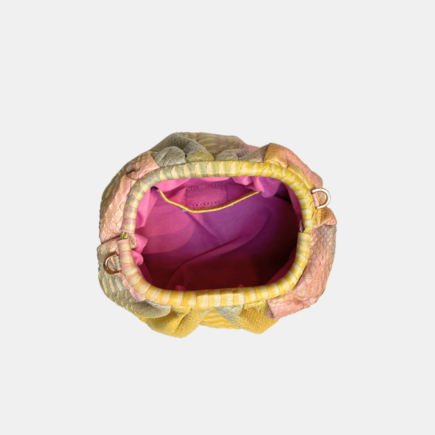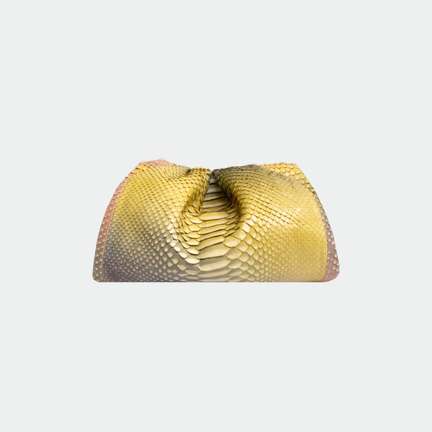 Soft python pouch, with cotton interior lining and magnetic closure.