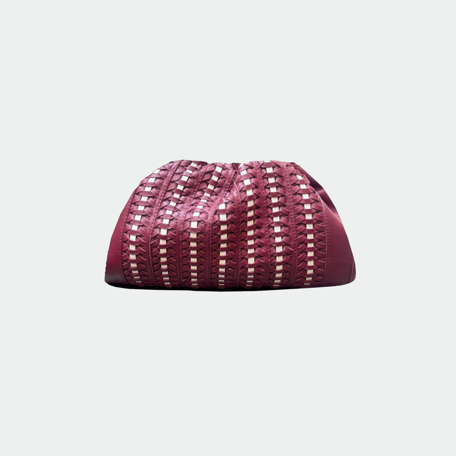 Unique with small pocket. Gunmetal-colored metallic finishes. Removable leather shoulder strap.