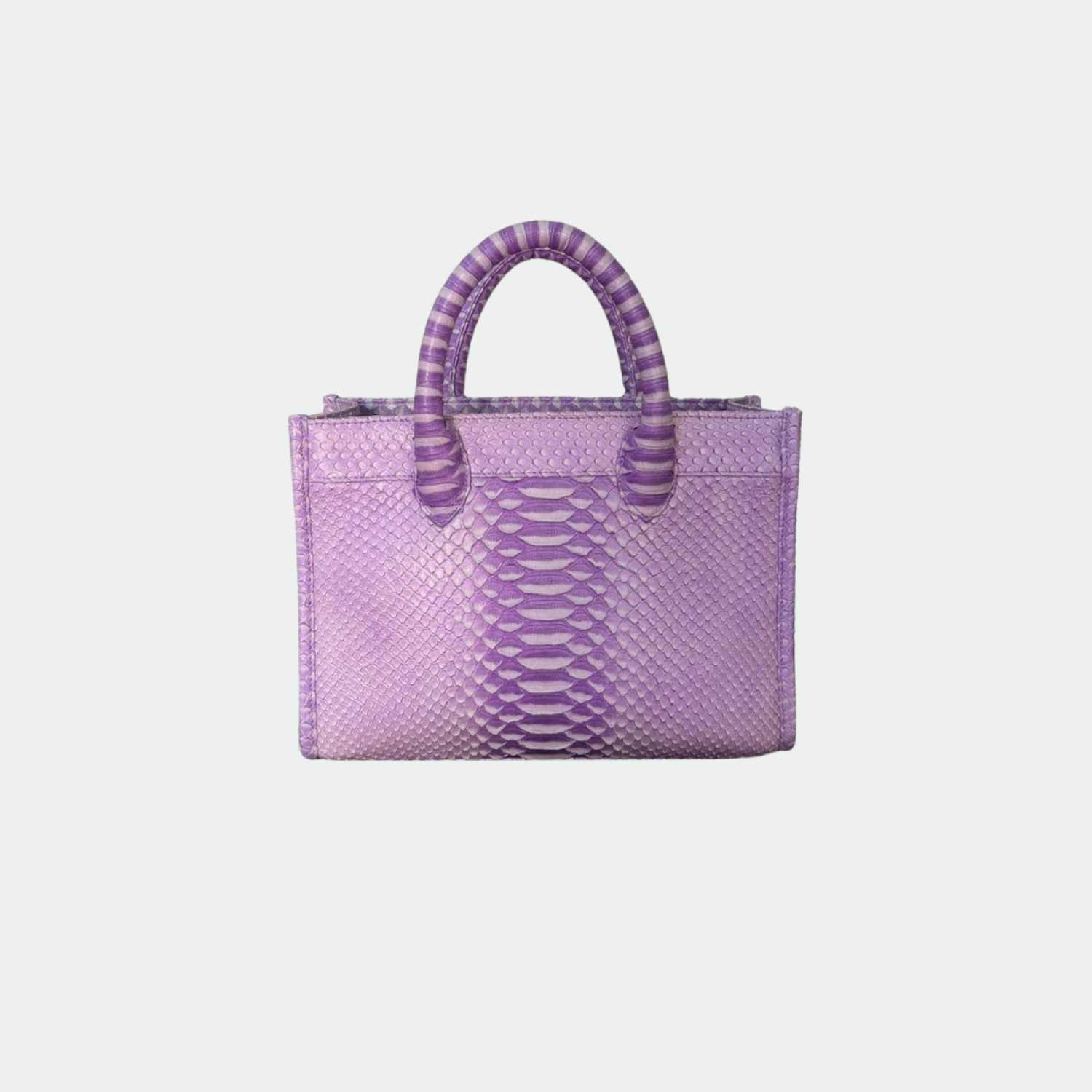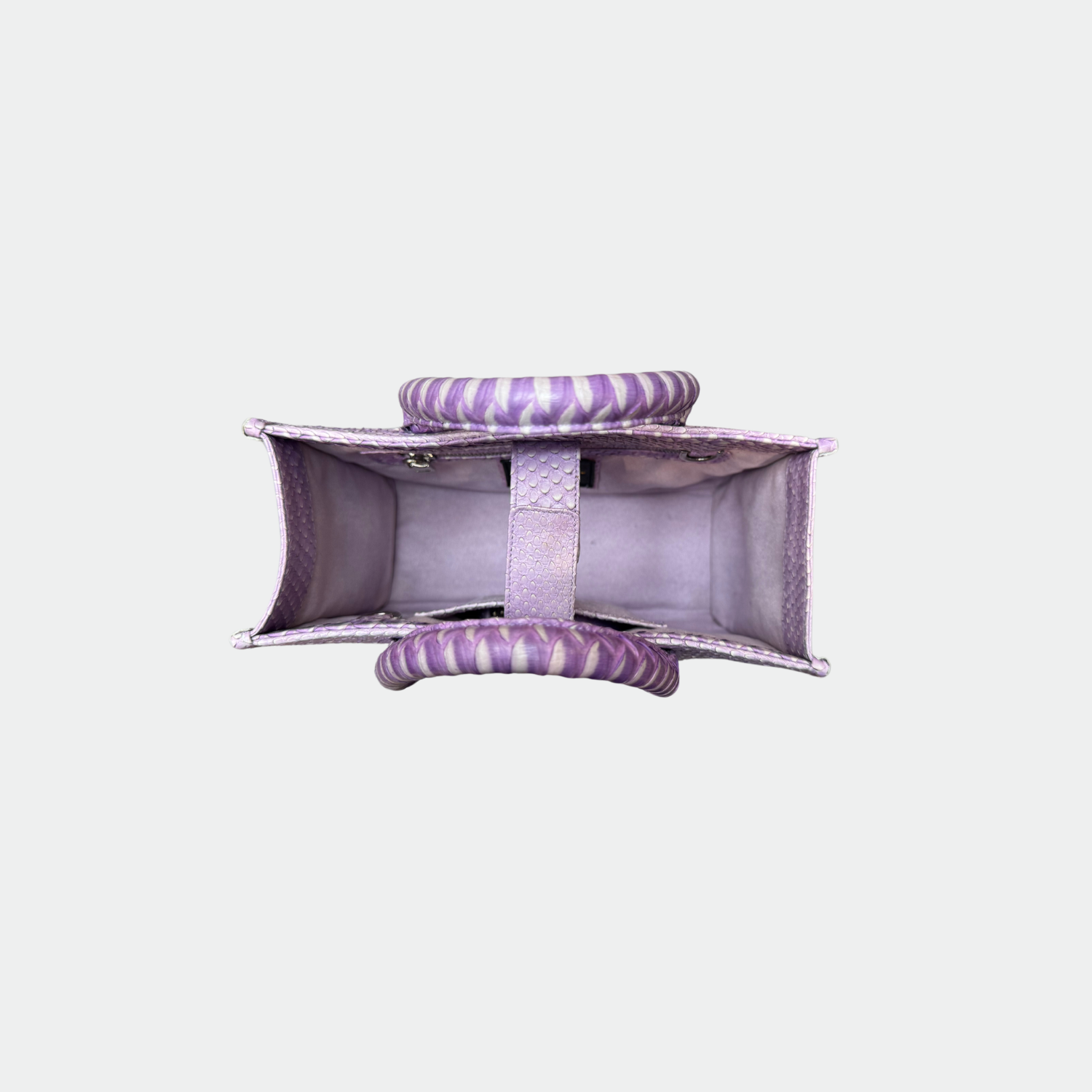 Sac en python, avec doublure intérieure en coton et anses rigides. Un compartiment principal avec une petite poche et une poche zippée. Bandoulière amovible en python.