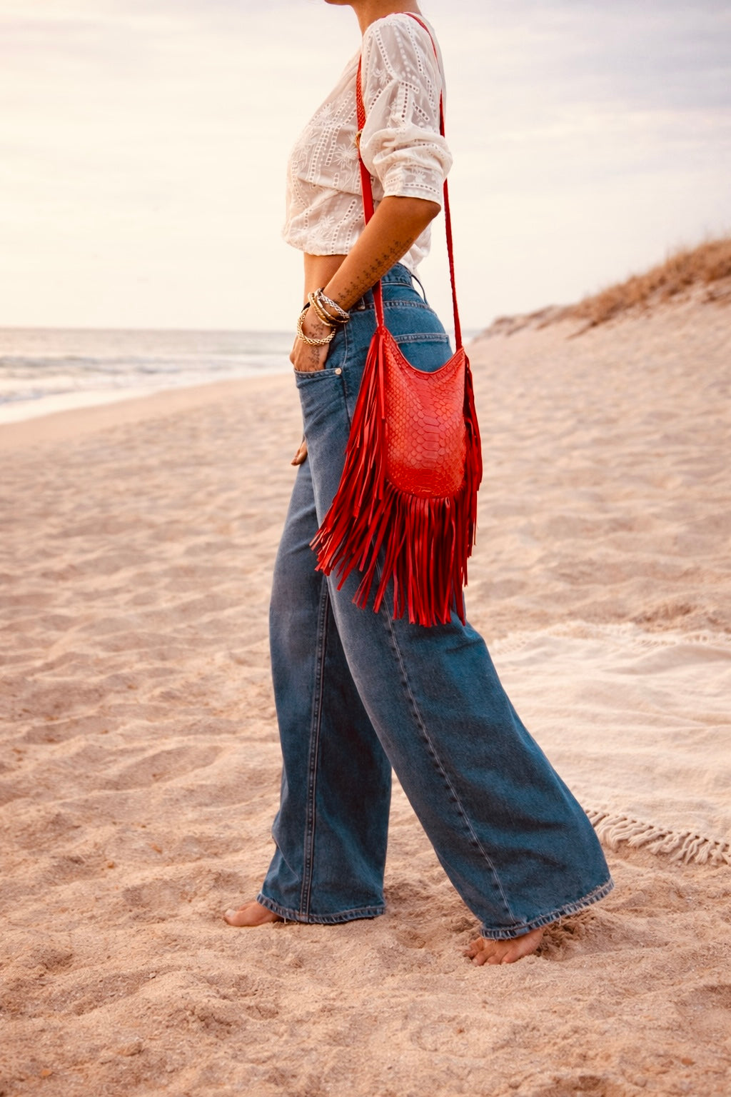 Bandoulière ajustable en cuir.