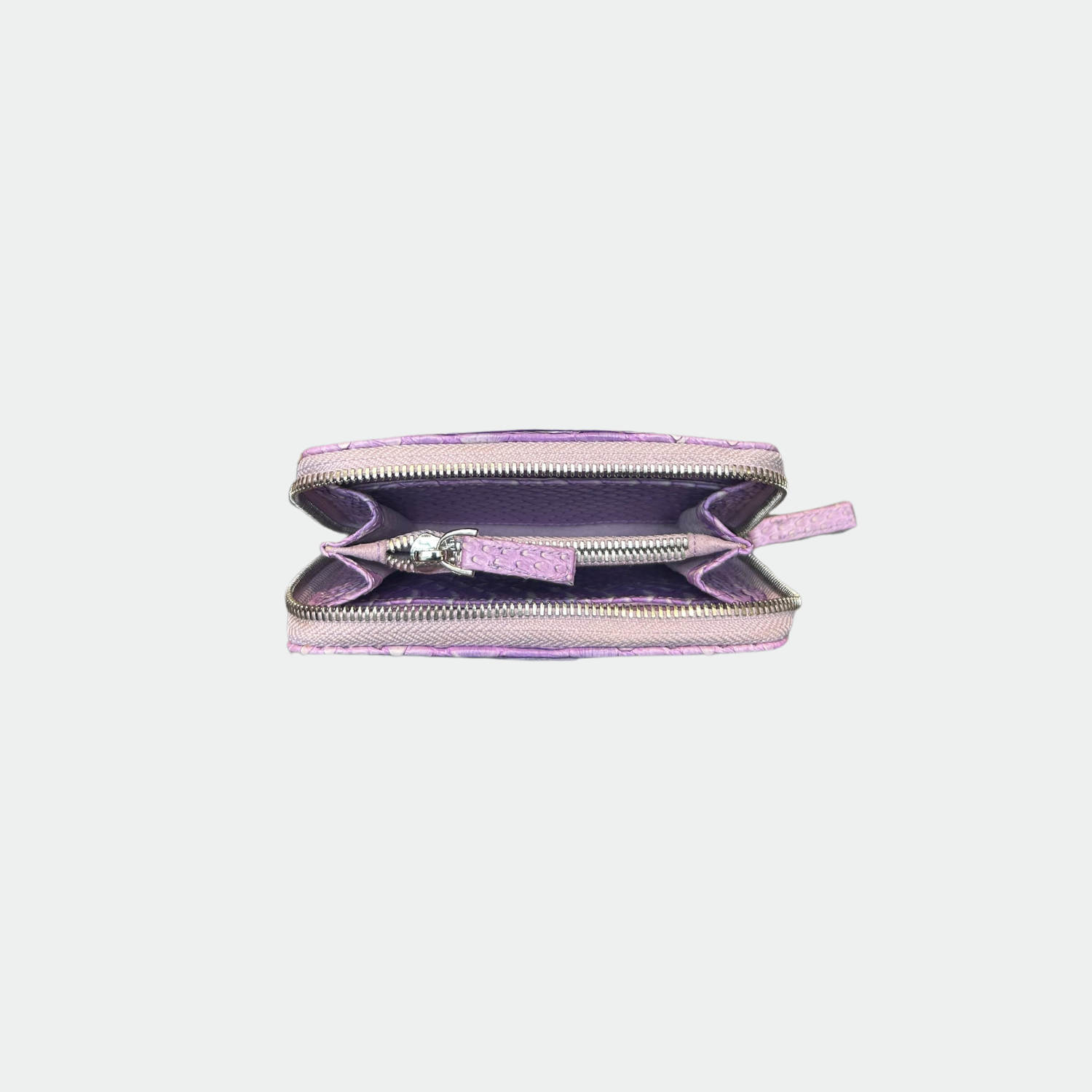 Portefeuille en python. Double compartiment avec pochette zippée et porte carte. Zip de fermeture