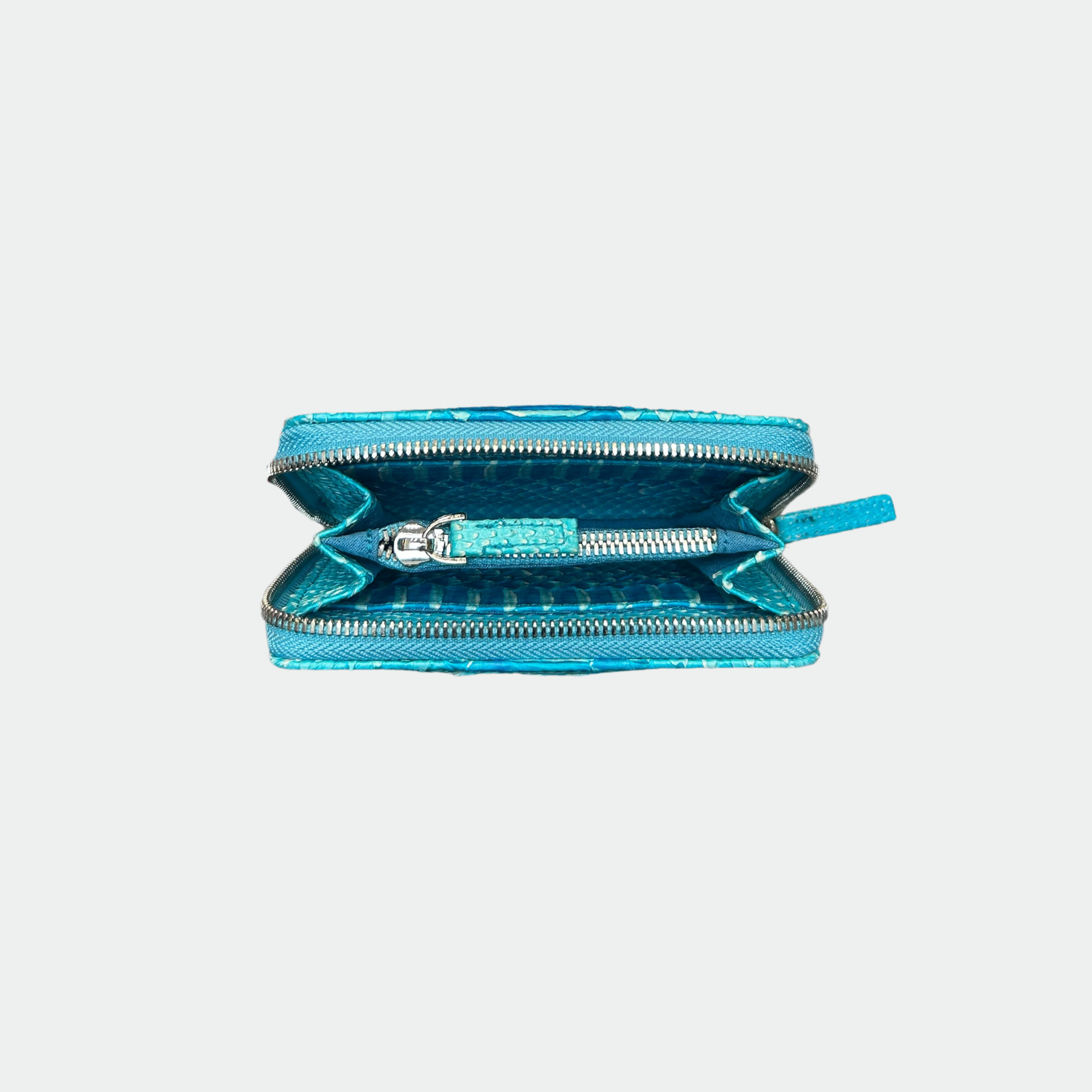 Portefeuille en python. Double compartiment avec pochette zippée et porte carte. Zip de fermeture