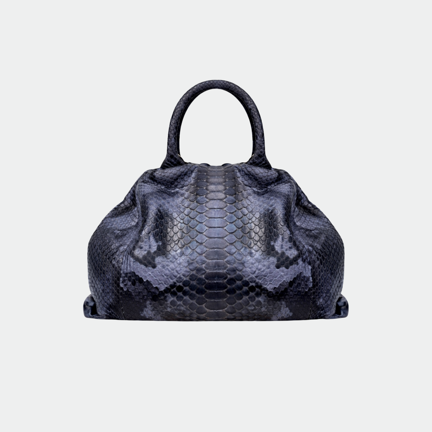 Sac souple en python avec doublure intérieure en coton, anses rigides et fermeture magnétique. . Compartiment unique avec petite poche. Bandoulière amovible en python.