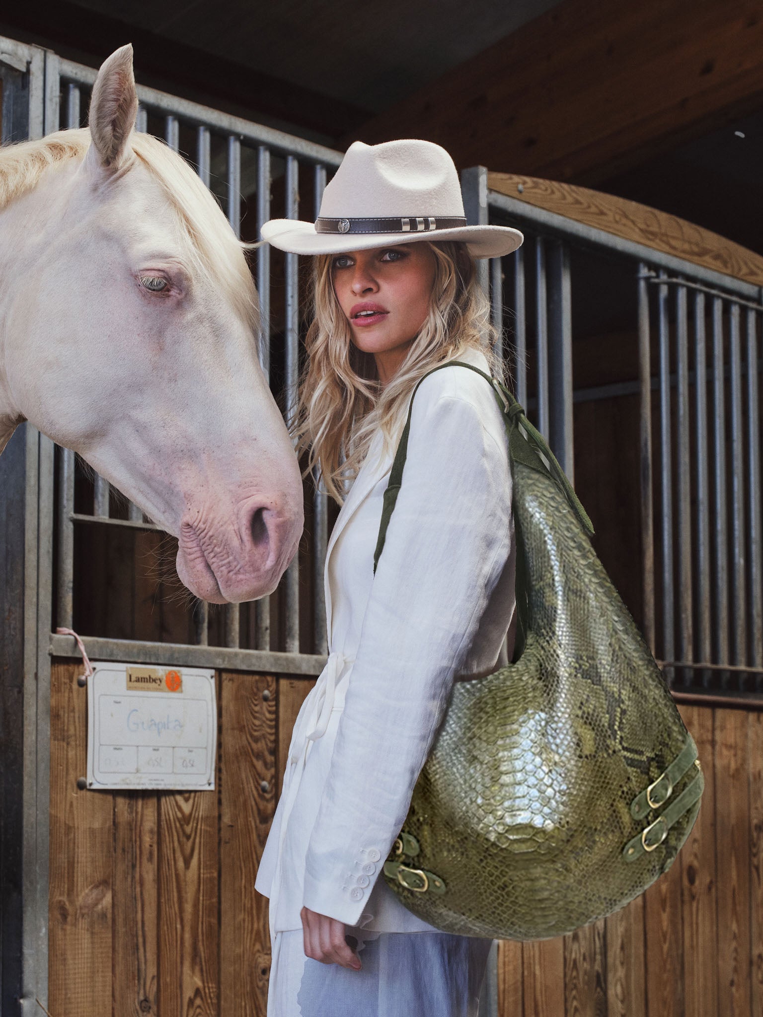 Sac en Python, avec doublure intérieure en coton et fermeture magnétique.