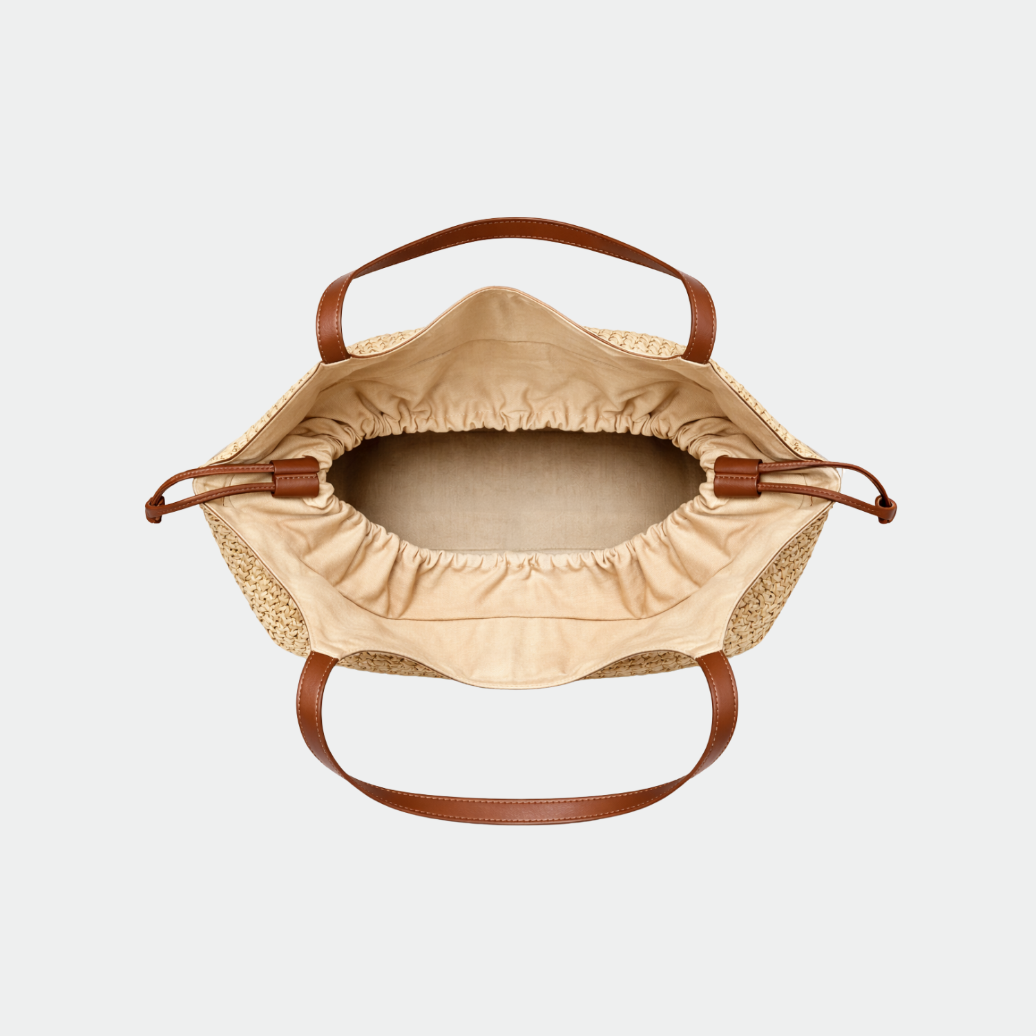 Pochon intérieur en coton, refermable à l’aide de liens en cuir.