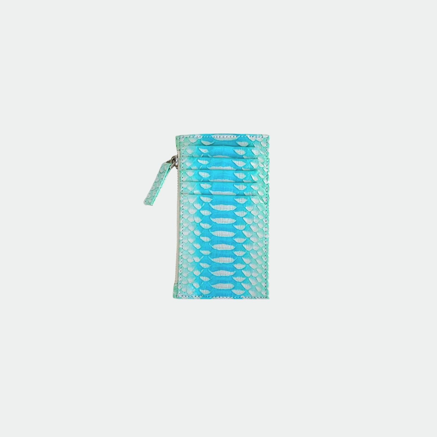 Porte carte en python. Cinq compartiments pour carte avec pochette zippée. Zip de fermeture en