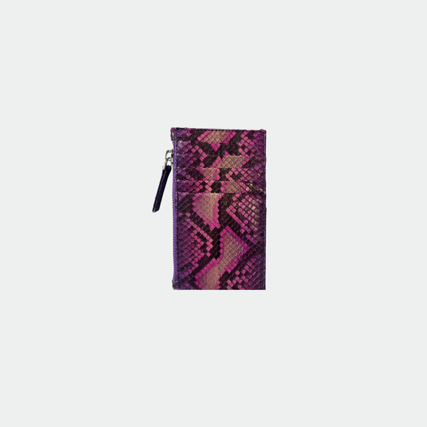 Porte carte en python. Cinq compartiments pour carte avec pochette zippée. Zip de fermeture en