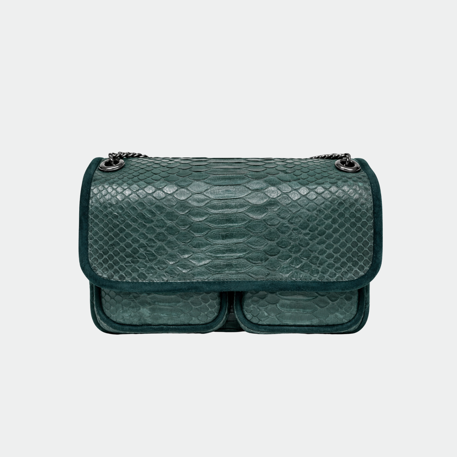 Sac en python, avec doublure intérieure en coton et anses en python et cuir.