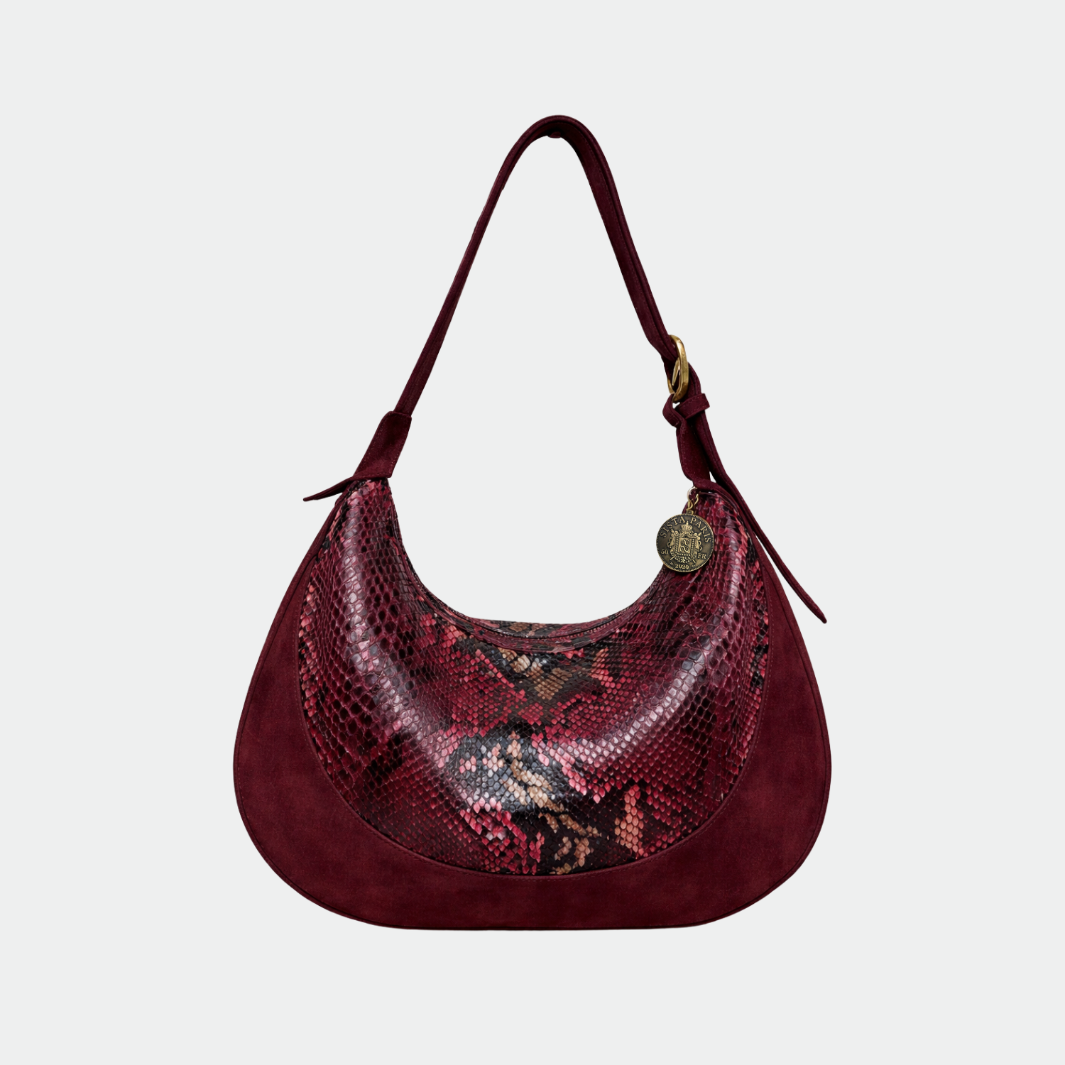 Sac en python, avec doublure intérieure en coton et fermeture avec un zip dont la tirette est une pièce.