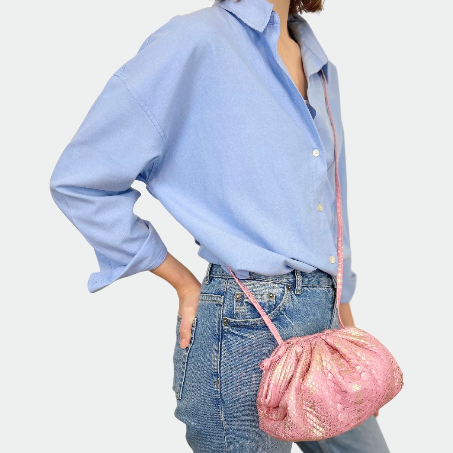 Pochette souple en python, avec doublure intérieure en coton et fermeture magnétique.