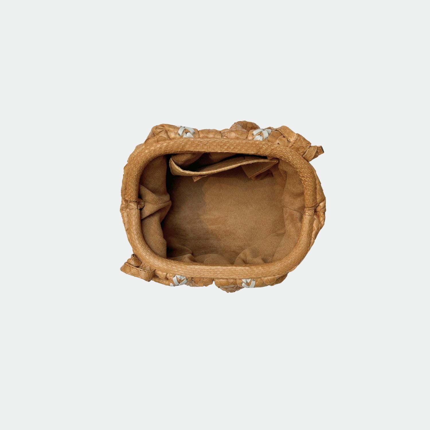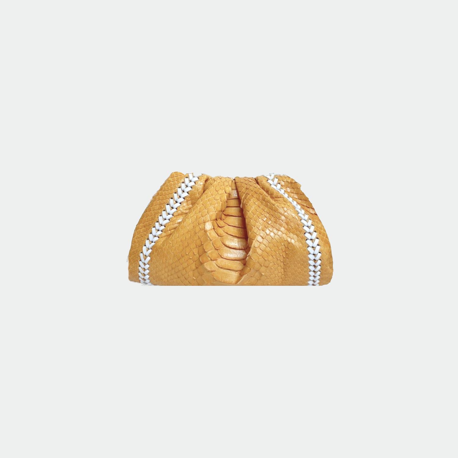 Pochette souple en python, avec doublure intérieure en coton et fermeture magnétique.