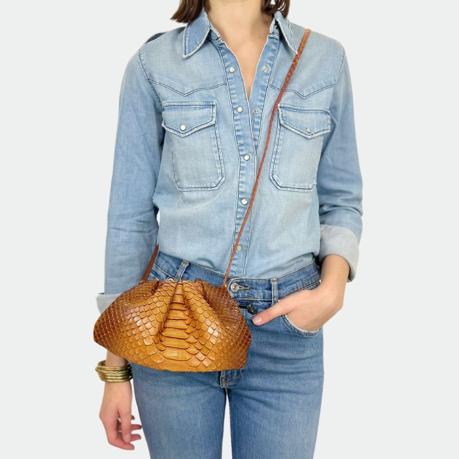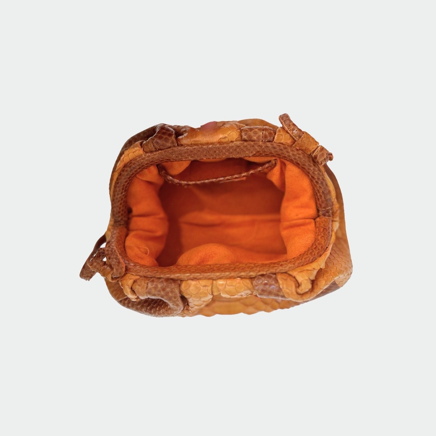 Pochette souple en python, avec doublure intérieure en coton et fermeture magnétique.