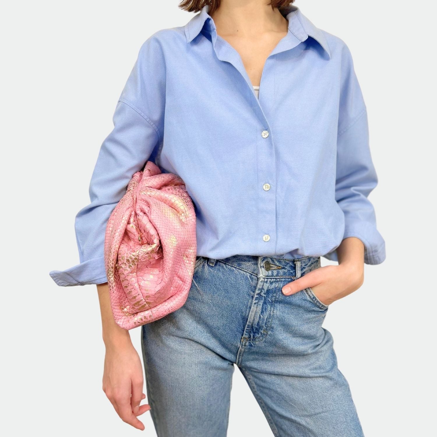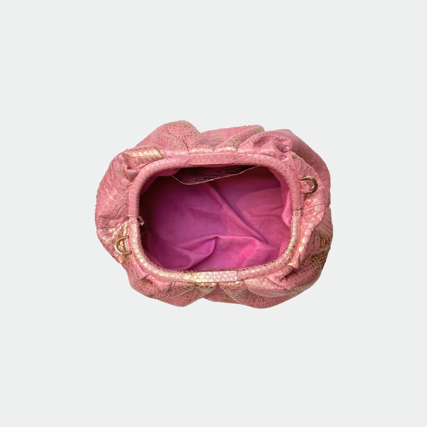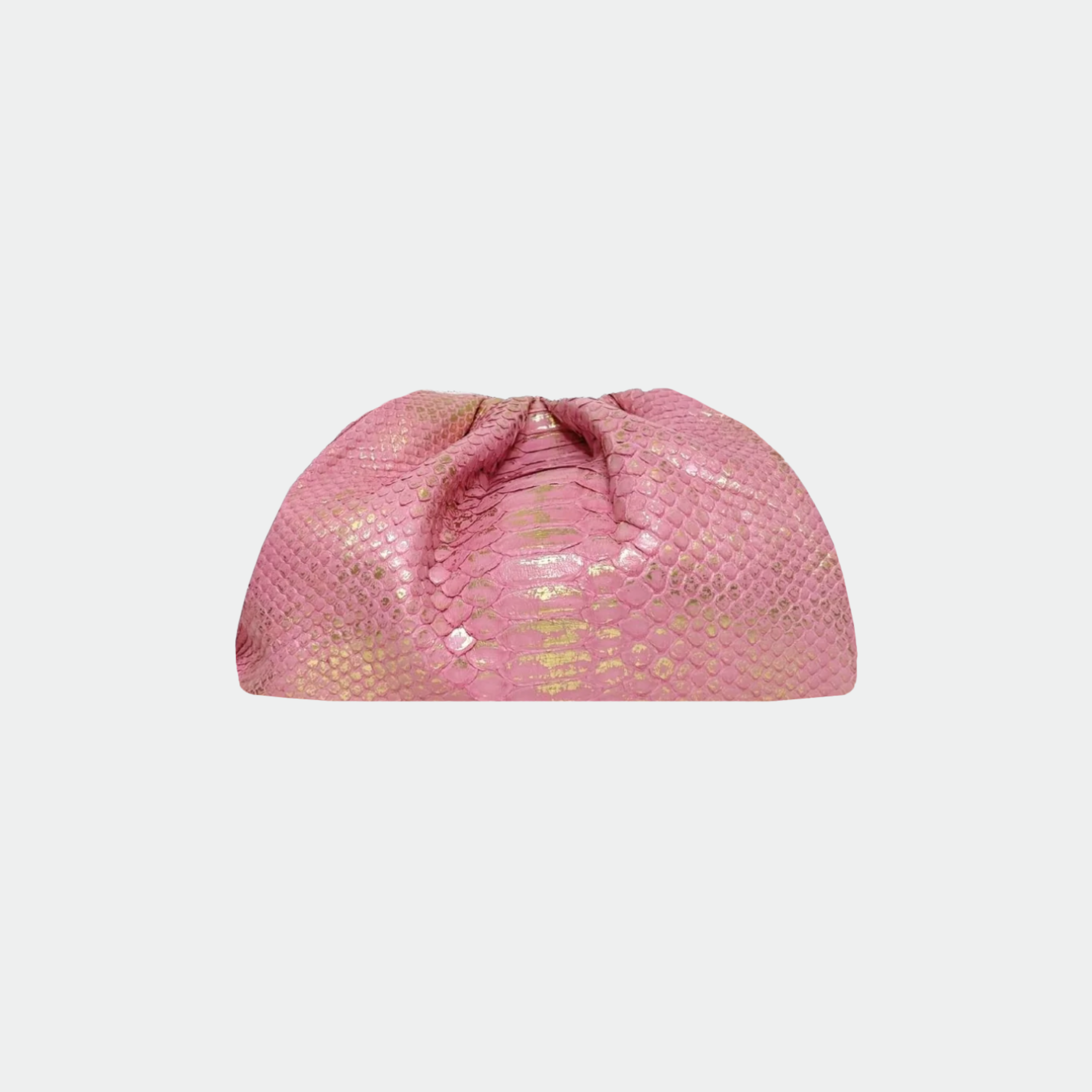 Pochette souple en python, avec doublure intérieure en coton et fermeture magnétique.