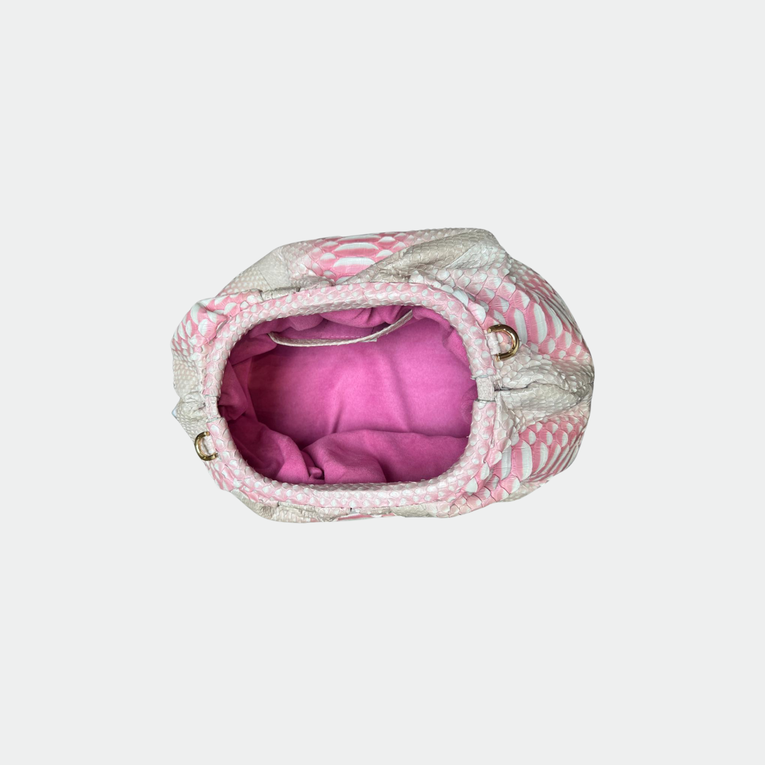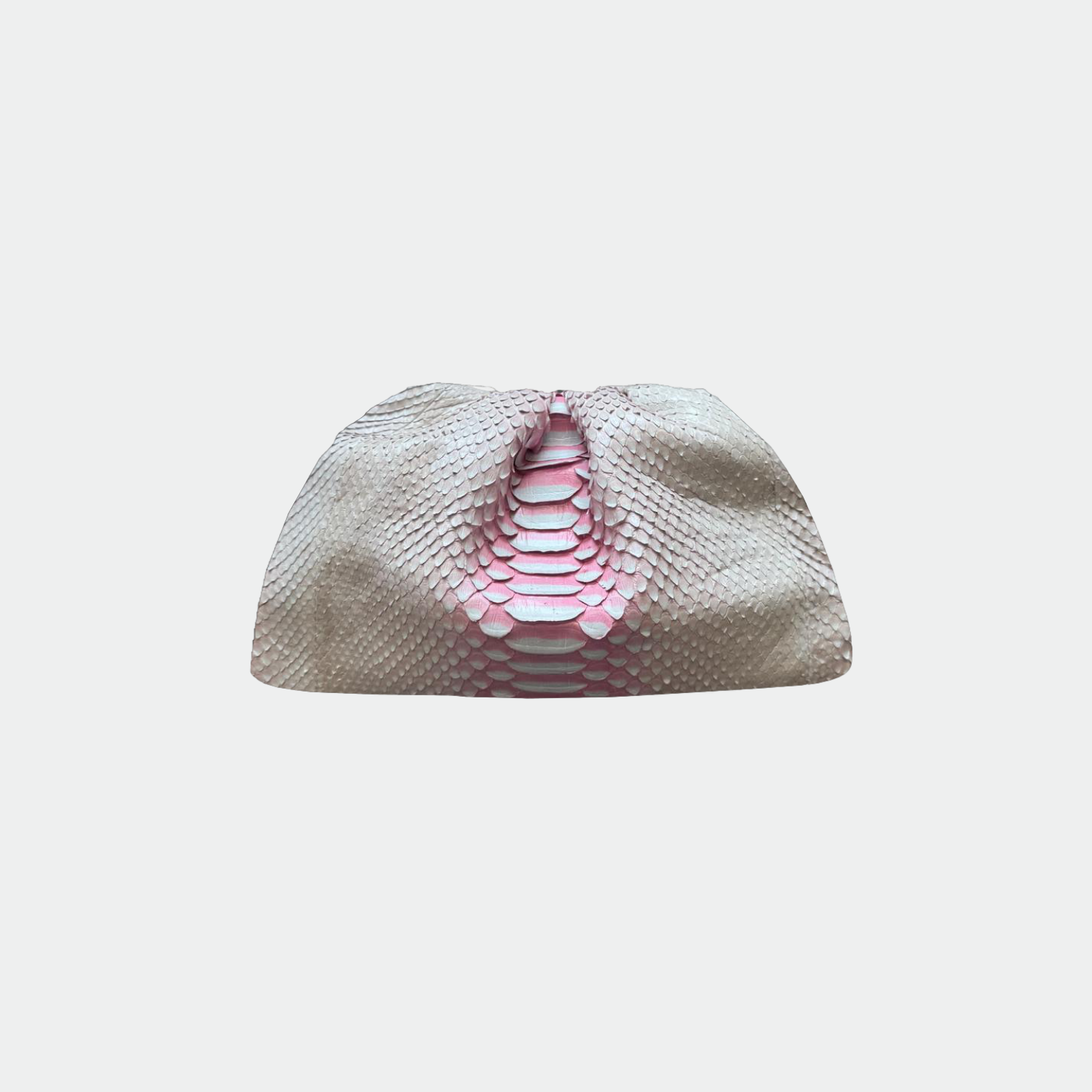 Pochette souple en python, avec doublure intérieure en coton et fermeture magnétique.