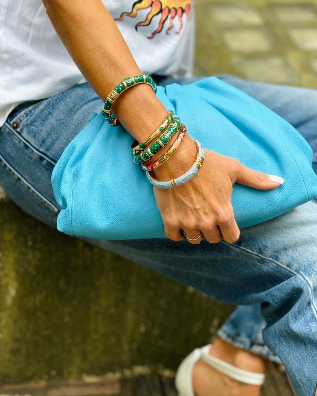 unique avec petite poche. Finitions métalliques couleur argent. Bandoulière amovible en cuir.