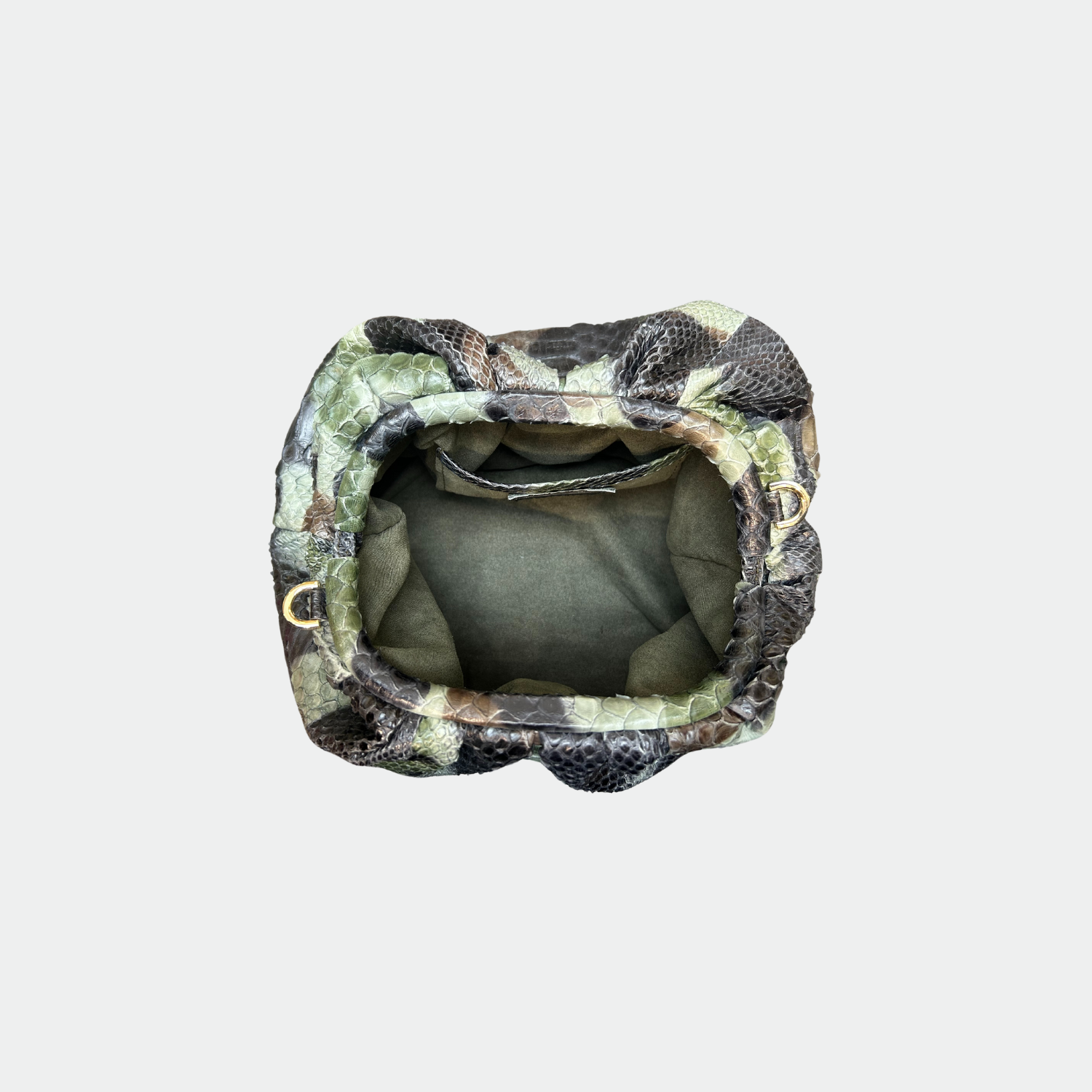 Pochette souple en python, avec doublure intérieure en coton et fermeture magnétique.