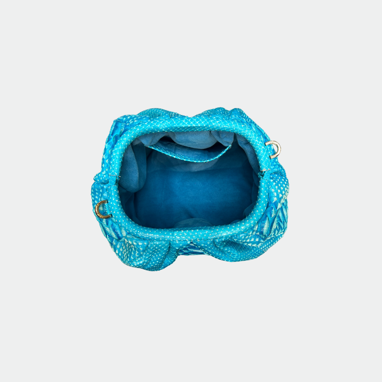 Pochette souple en python, avec doublure intérieure en coton et fermeture magnétique.