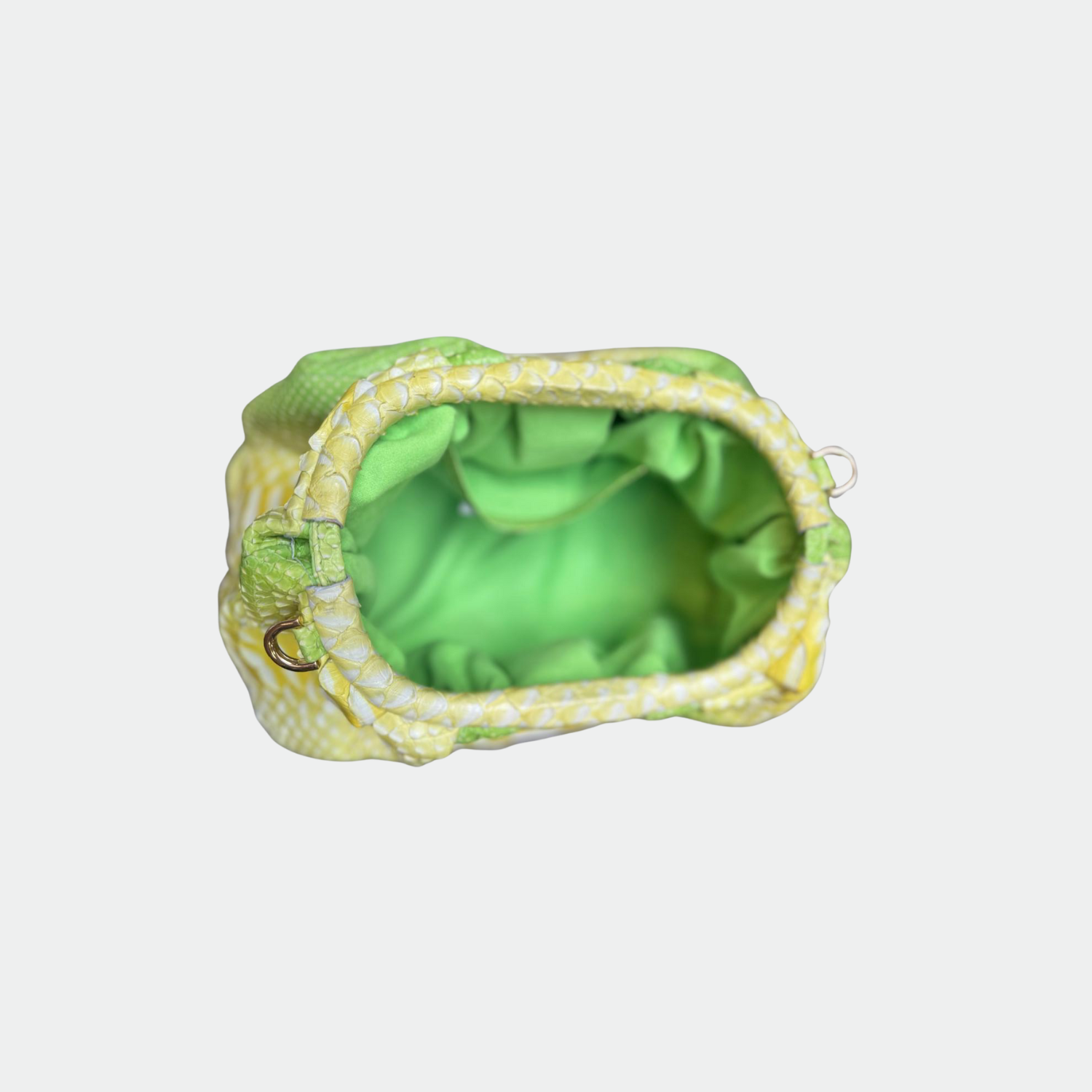 Pochette souple en python, avec doublure intérieure en coton et fermeture magnétique.